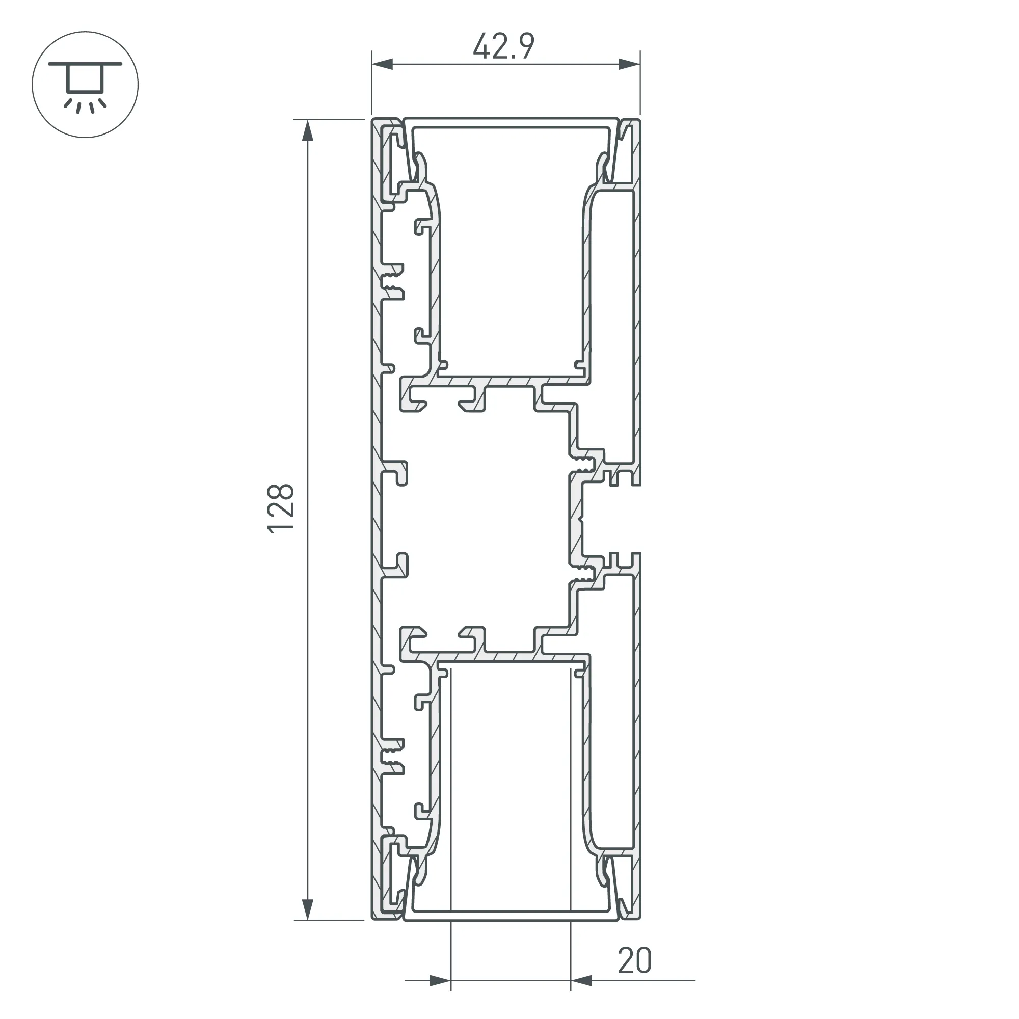 Профиль с экраном S2-WALL-X2-H128-2500 ANOD+OPAL (Arlight, Алюминий)