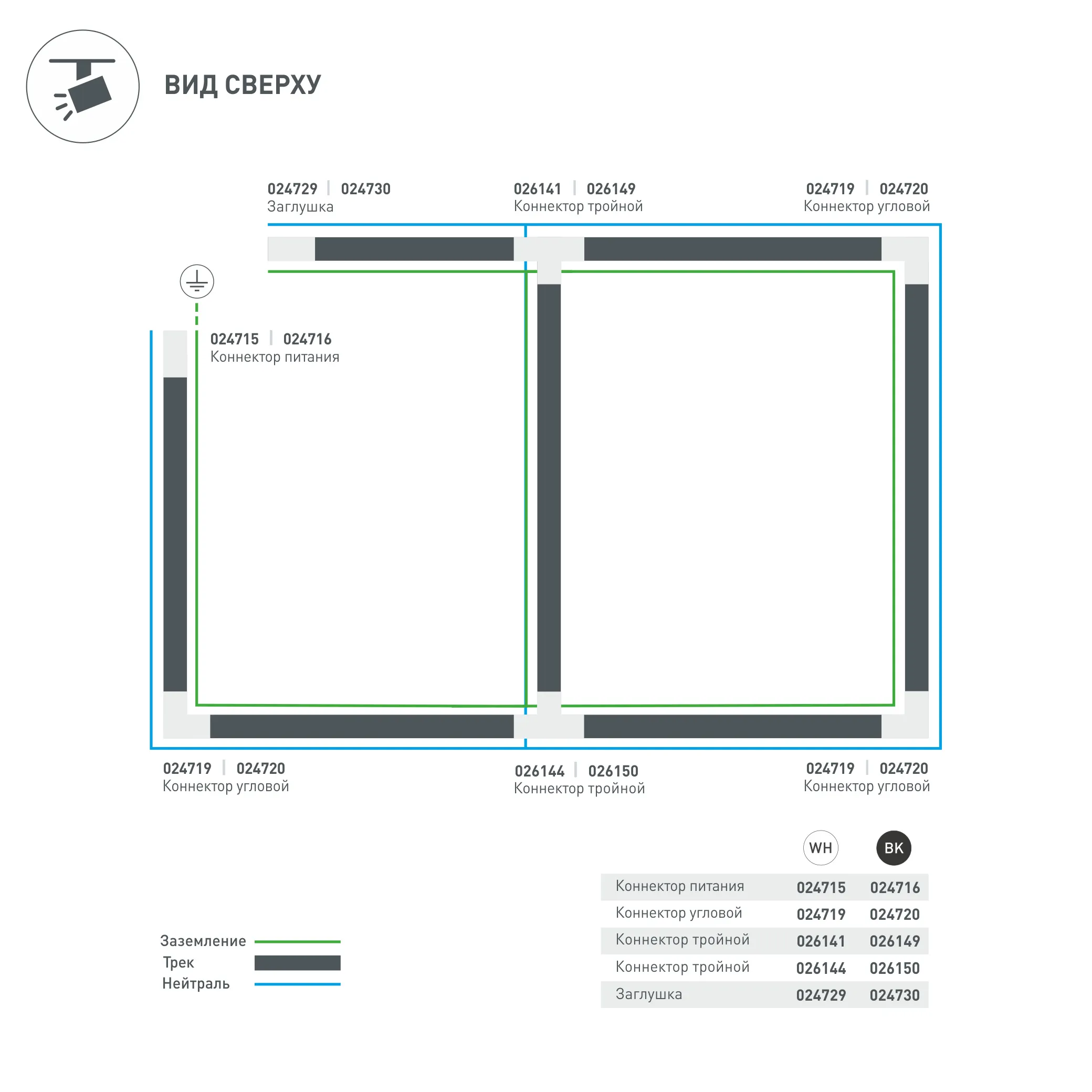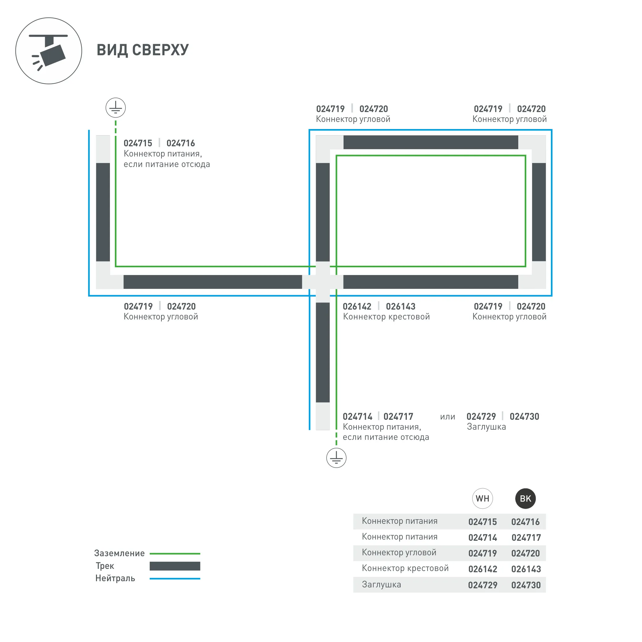 Угловой коннектор 90 градусов, питание по внутренней стороне. Цвет белый. 99х99х33 мм с контактами, 66х66х33 мм без контактов. При использовании с треками и аксессуарами другой серии возможно отличие по цвету.
