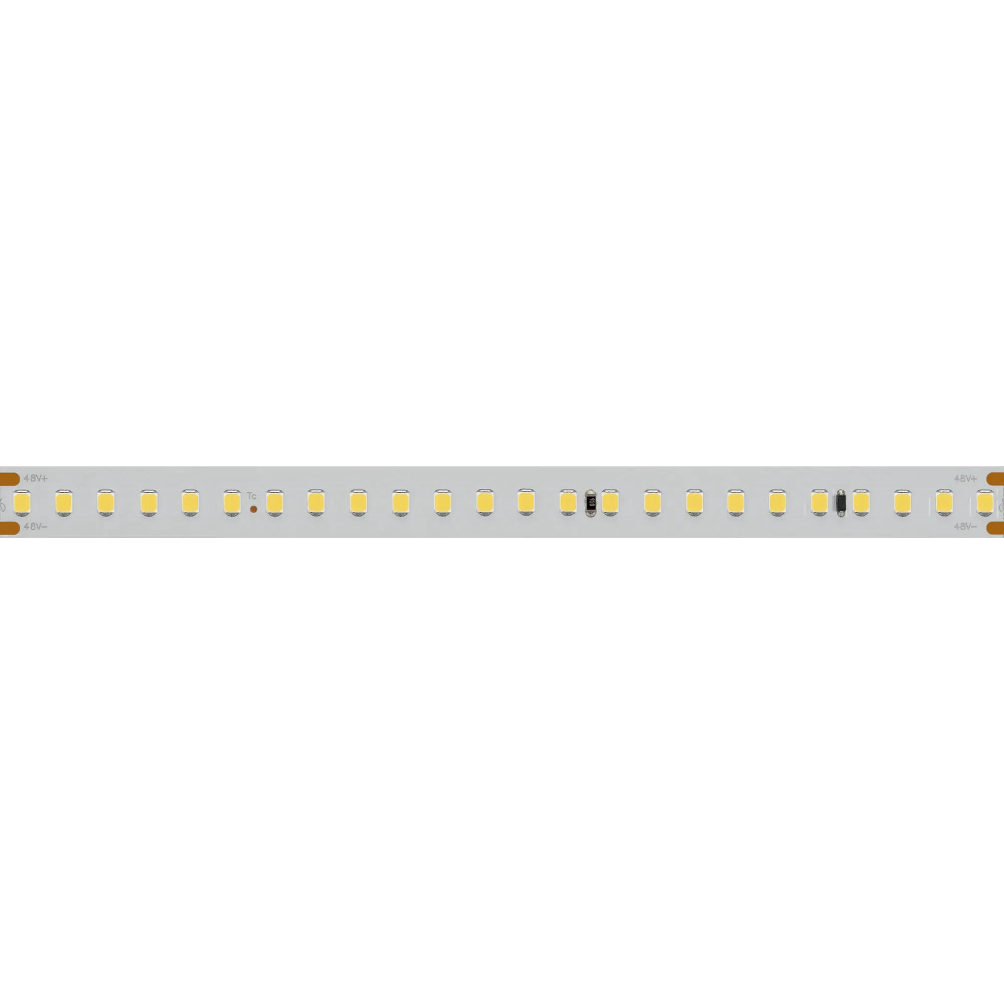 Стабилизированная лента LUX, подключение 50м в одну линию, светодиоды smd 2835, 144шт/м (7200шт на 50м), белая плата 12мм, скотч 3М. Цвет ДНЕВНОЙ 3800-4200K. Питание 48V, мощность 5.8 Вт/м (290 Вт на 50м), угол 120°, цветопередача CRI>85. Размеры 50000х12x1.6мм. Мин.отрезок 166.67мм, 24 шт светодиодов. Пакет 50м. Цена за 1м.