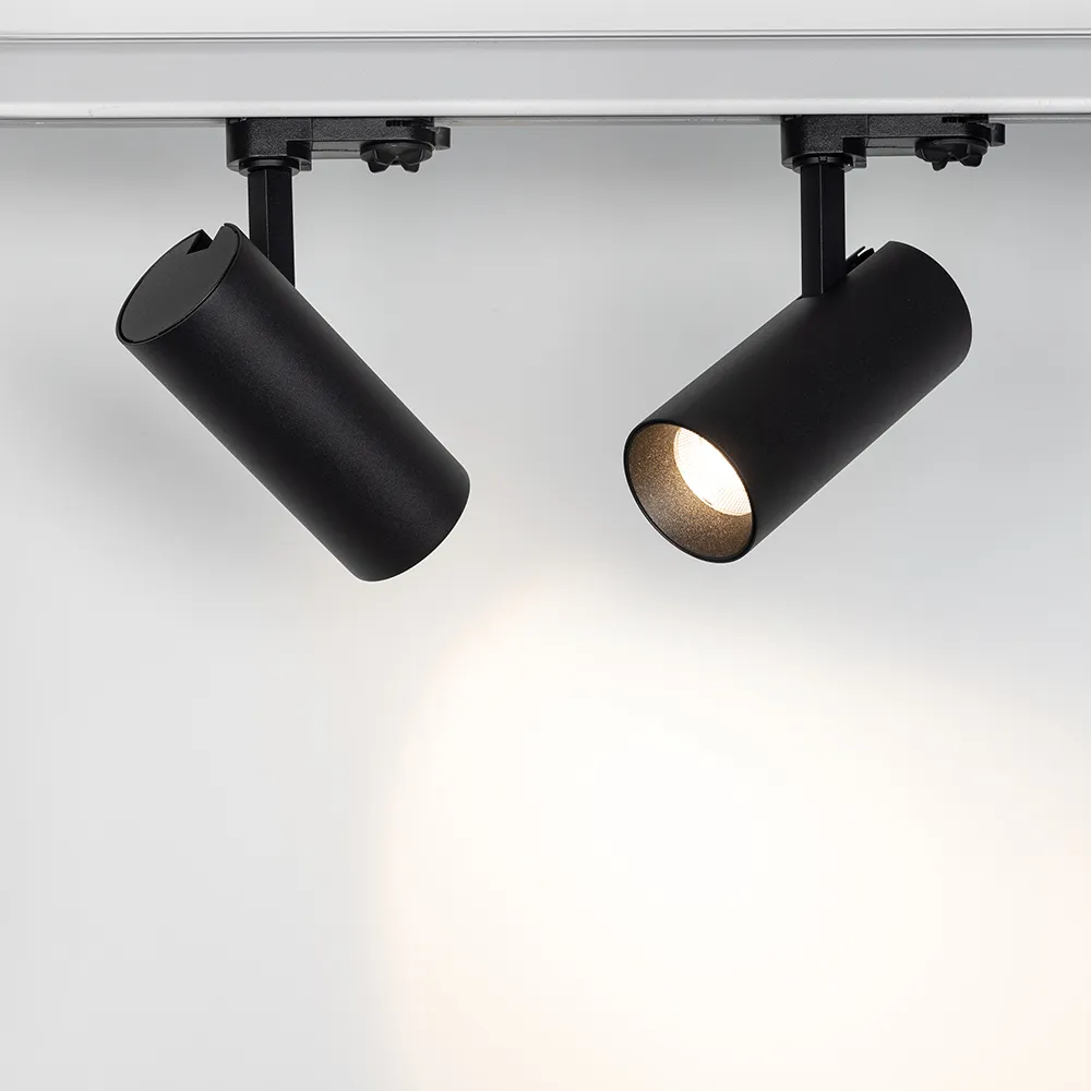 Трековый светильник 8Вт, черный круглый корпус, черная вставка, металл.