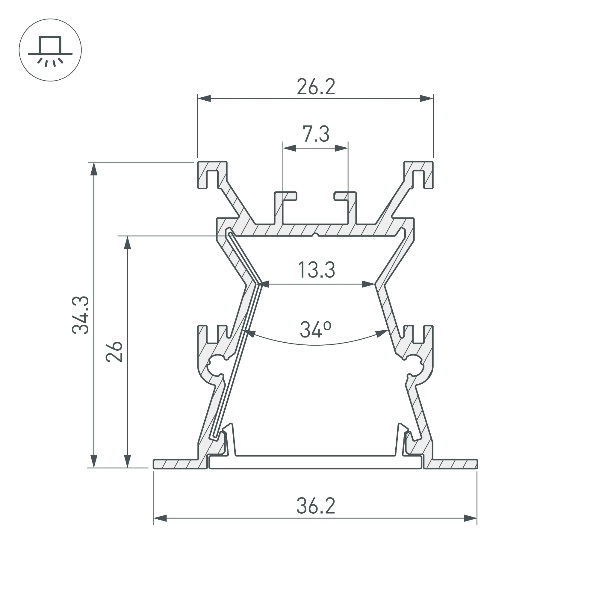 Поставка под заказ от 1 компл. Комплект с экраном. Алюминиевый анодированный профиль для светодиодных лент и линеек. Оснащён специальным отражателем, который увеличивает световой поток на 20%. Габаритные размеры (L×W×H): 2000x36,2x34,3 мм. Ширина площадки для ленты 13 мм. Аксессуары приобретаются отдельно. Минимальный заказ 1 комплект.
