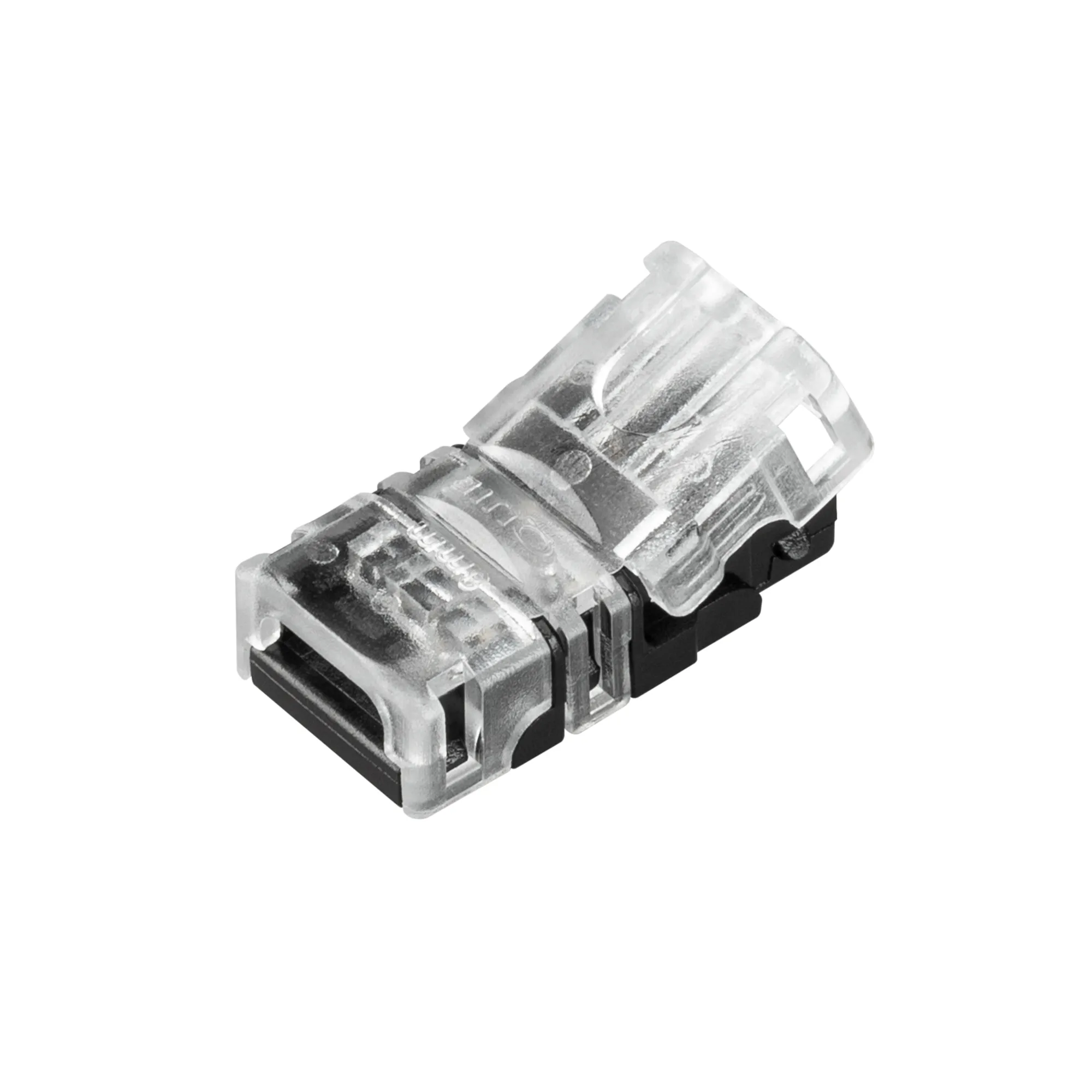 Одиночный коннектор (без провода) для подключения питания к одноцветным открытым лентам шириной 8 мм. Очистка провода питания (0,34-0,75 мм2) от изоляции не требуется. Материал - прозрачный пластик. Максимальный допустимый ток 3 А, напряжение 3-24 В. Цена за 1 шт.
