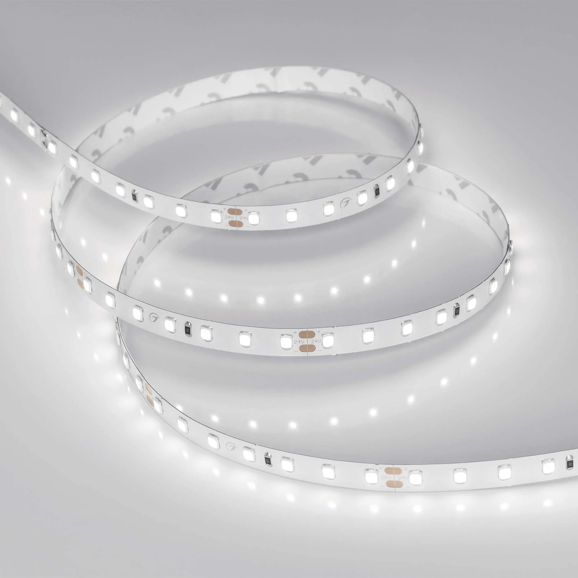 Светодиодная лента RT серии A98 с высоким индексом цветопередачи. Светодиоды SMD 2835, 98 шт/м, белая плата шириной 8 мм, скотч 3М. Цвет ДНЕВНОЙ 5000K, индекс цветопередачи CRI 95...98, угол 120°. Питание 24 В, мощность 10 Вт/м (50 Вт на 5 м). Размеры 5000х8х1.5 мм. Мин. отрезок 71.43 мм, 7 светодиодов. Цена за 1 м.