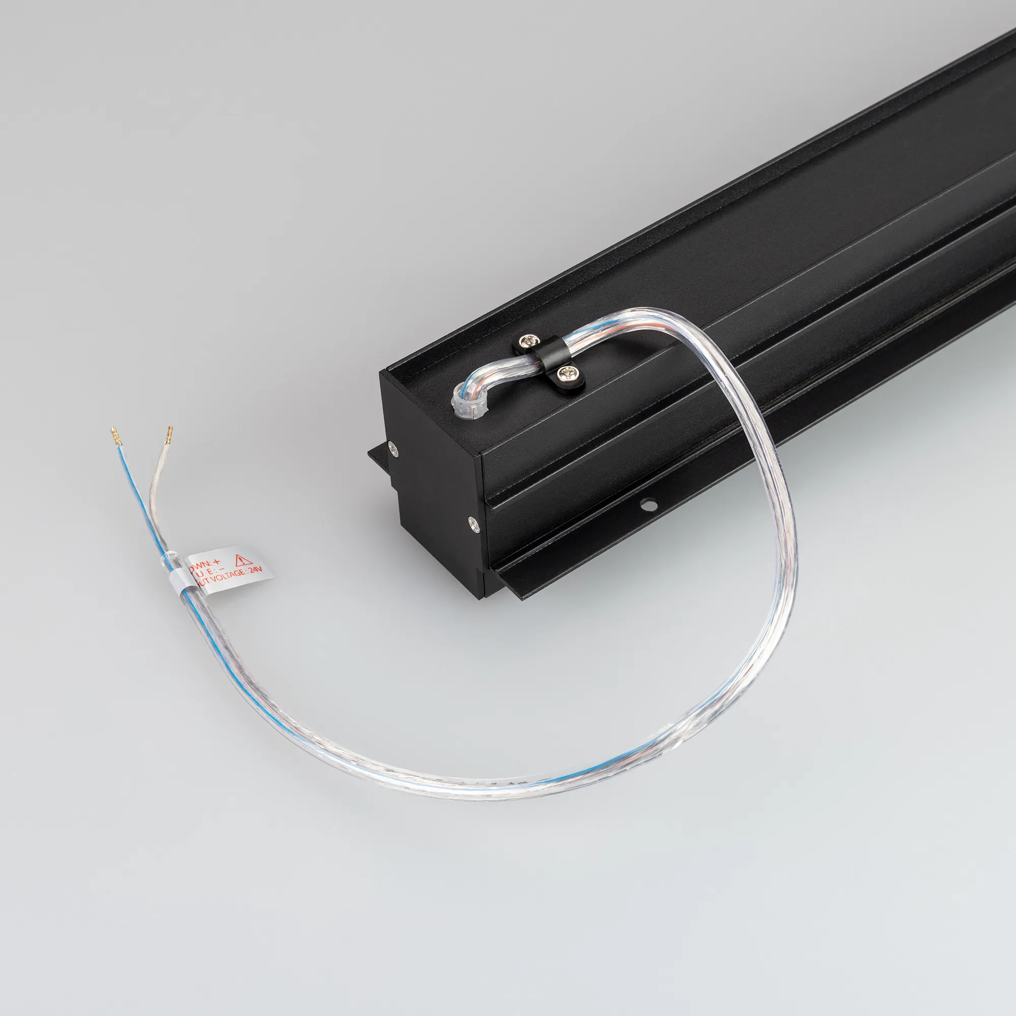Встраиваемый магнитный трек с фланцем для монтажа в гипсокартонный потолок, длина 3000 мм. DC24V. Материал алюминий, цвет черный. Две заглушки в комплекте. Размер ДxШxВ: 3000x75x60 мм. Размер (с учетом заглушек и фланцев) ДxШxВ: 3040x75x60 мм. DC24V.