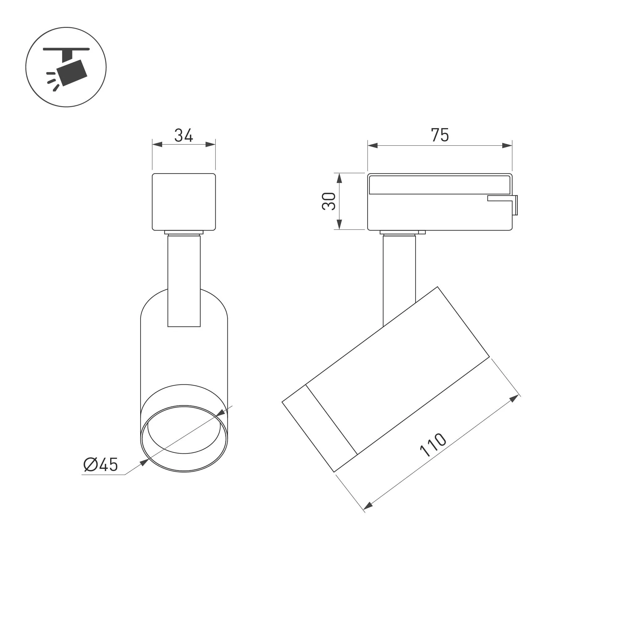 Светильник для треков/шин 2 провода. Мощность 7 Вт, св. поток 540 лм, 77 лм/Вт, дневной 4000 K, CRI>94, угол 24°, напряжение питания 230 В. Золотой круглый корпус из алюминия, материал линзы PMMA , степень защиты IP20. Размер: диаметр 45 мм, высота 165 мм. Монтаж на трек 1-фазный. Драйвер встроенный 8.5-40 В, 150 мА., пульсация <2%.
