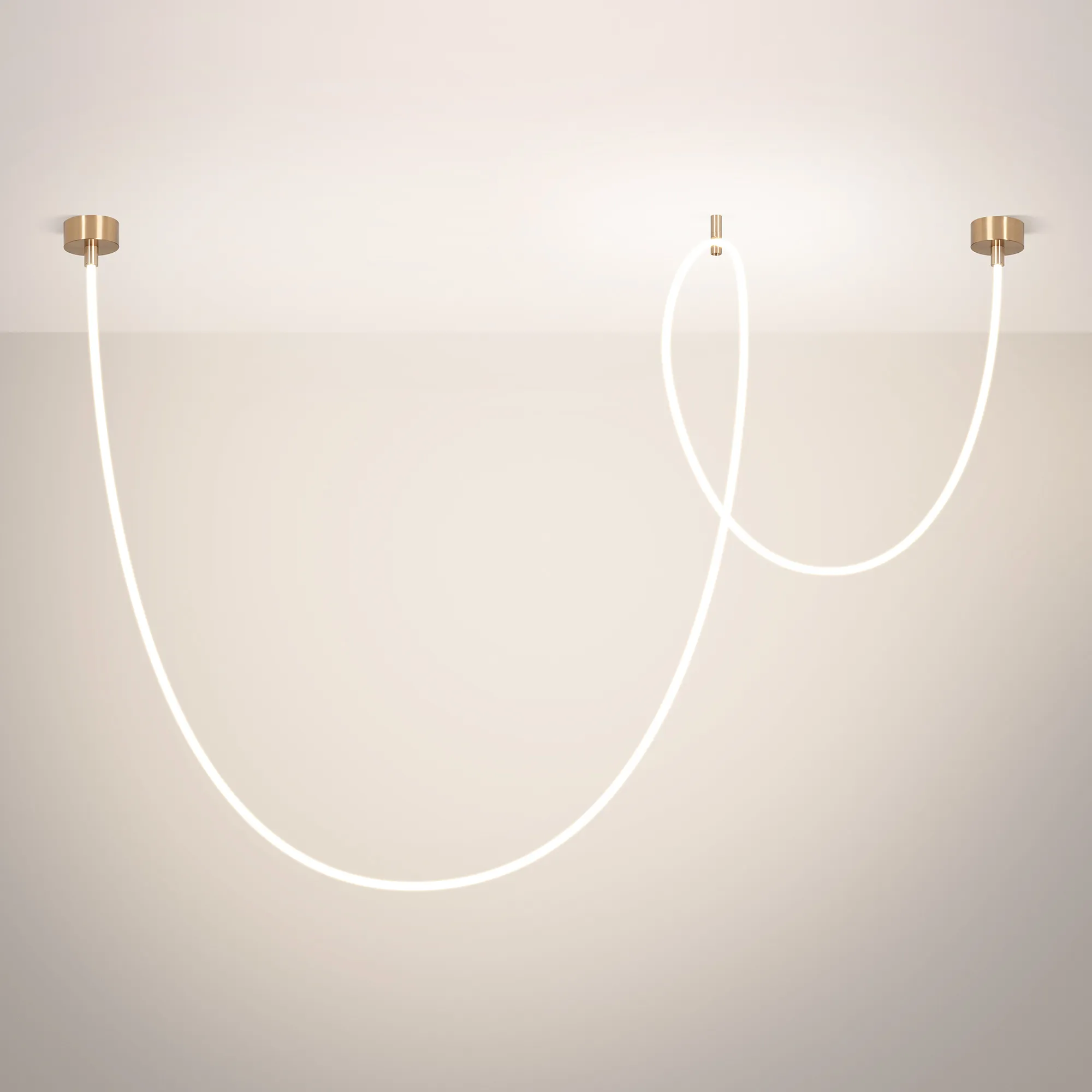 Подвесной светильник. Мощность 58 Вт, св. поток 3260 лм, 56 лм/Вт, тёплый 3000 K, CRI>90, угол 360°, напряжение питания 230 В. Золотой круглый корпус из стали, силиконовая герметичная лента, степень защиты IP20. Размер: общая высота чаши 85 мм, высота чаши без вывода под неон 50 мм, диаметр вывода под неон 35 мм, диаметр чаши 130 мм, диаметр силиконовой герметичной ленты 18 мм, длина силиконовой герметичной ленты 5000 мм. Монтаж накладной. Блок питания 24 В, 2500 мА, пульсация <5%. Аксессуары (подвес и крепление) приобретаются отдельно.