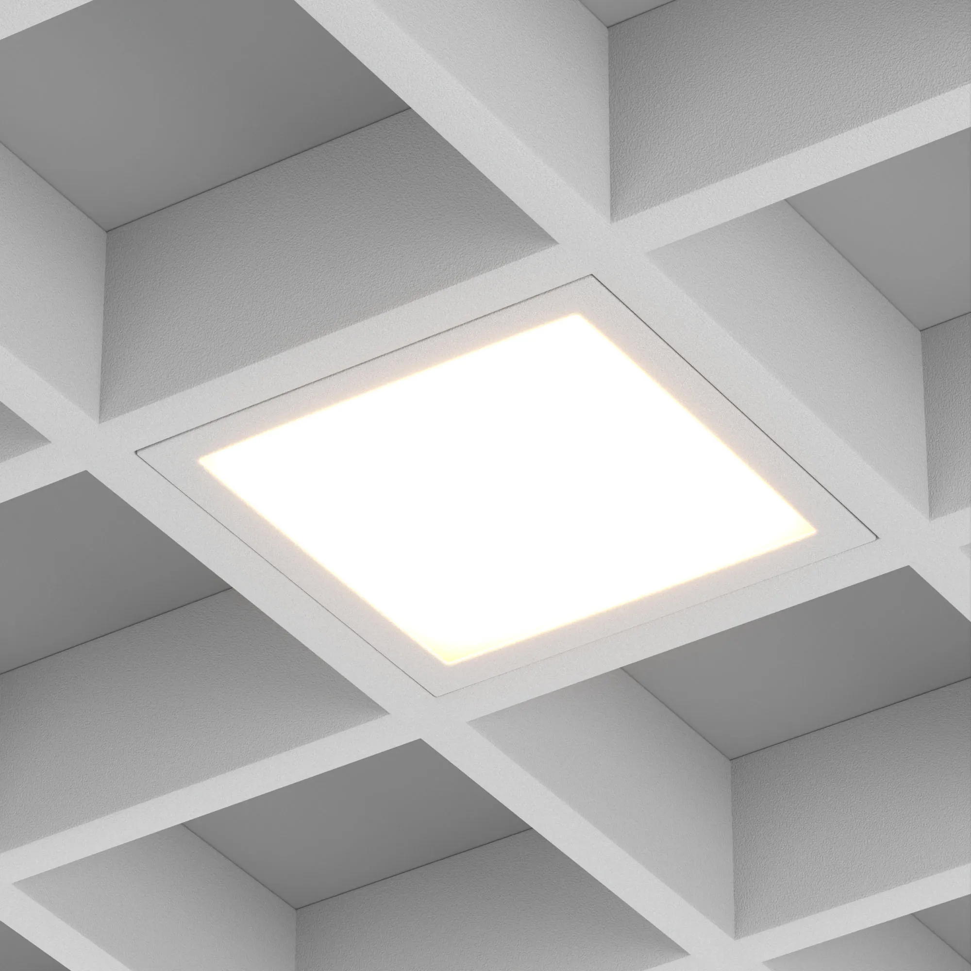 Встраиваемый светильник даунлайт для установки в потолки Грильято с размером ячейки 100х100 мм и высотой направляющих 30, 40 или 50 мм. Мощность 6 Вт, св. поток 685 лм, 109 лм/Вт, тёплый 3000 K, CRI>90, угол 90°, напряжение питания 230 В. Белый квадратный корпус из алюминия, степень защиты IP40. Размер: длина 90 мм, ширина 90 мм, высота 40 мм. Монтаж встраиваемый, установочное отверстие: длина 90 мм, ширина 90 мм. Драйвер 30-40 В, 150 мА, пульсация <2%.