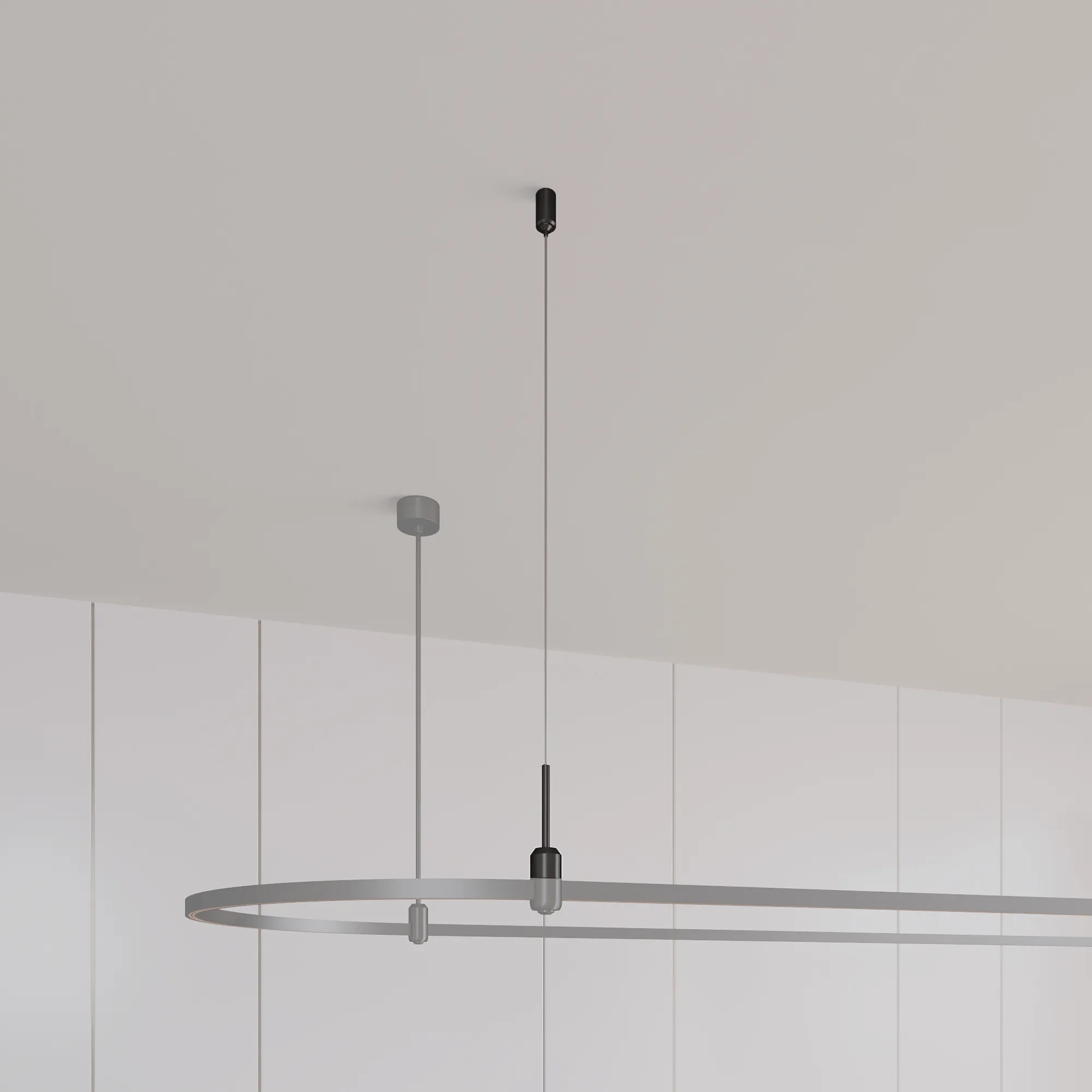 Подвес гибкий с регулируемым тросом для подвесного монтажа треков системы APRIORI. Тип крепления A. Не проводит электричество. Размер: Ø20 х 1500 х Ø38 мм. Материал алюминий, цвет черный.