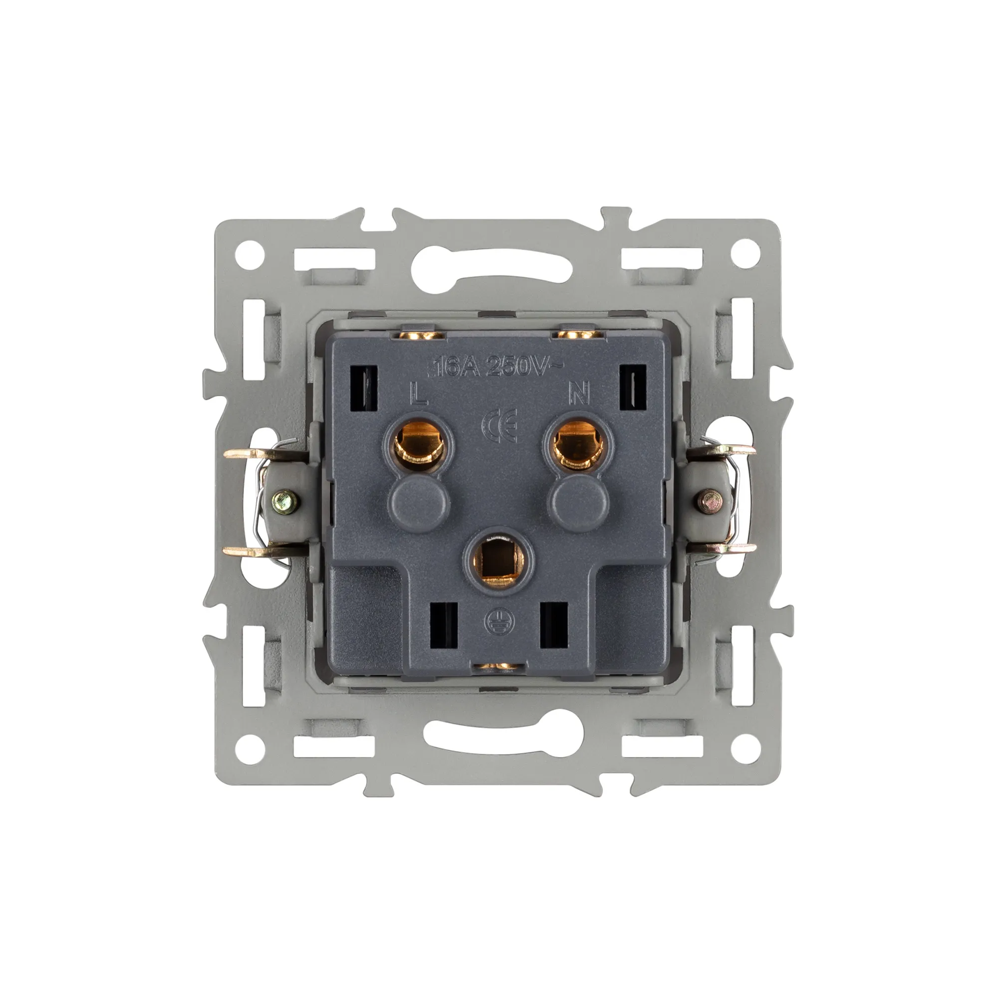 Механизм розетки с заземлением на 1 пост, с суппортом из алюминия. Цвет - белый. Степень пылевлагозащиты - IP20.