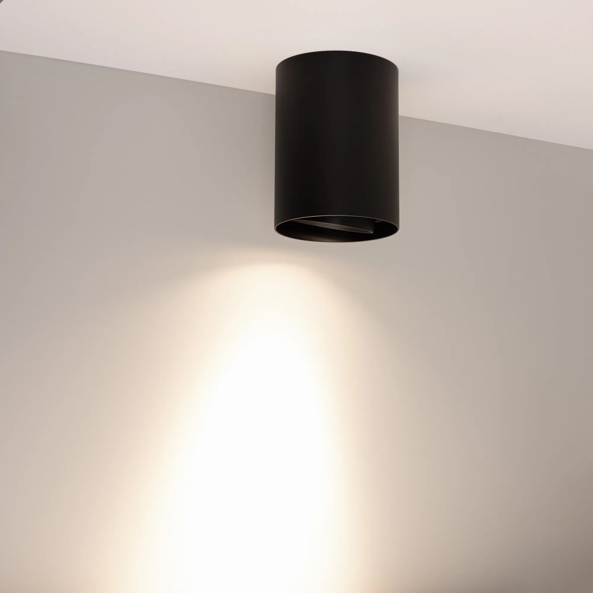 Накладной интерьерный светильник. Мощность 18 Вт, св. поток 1700 лм, 99 лм/Вт, дневной 4000 K, CRI>90, угол 15°, регулируемое направление луча 40°(20+20), поворотный световой модуль вокруг своей оси на 340°, UGR <11, напряжение питания 230 В. Чёрный круглый корпус из алюминия, степень защиты IP54. Размер: диаметр 110 мм, высота 145 мм. Монтаж накладной. Драйвер 27-43 В, 450 мА, пульсация <1%.