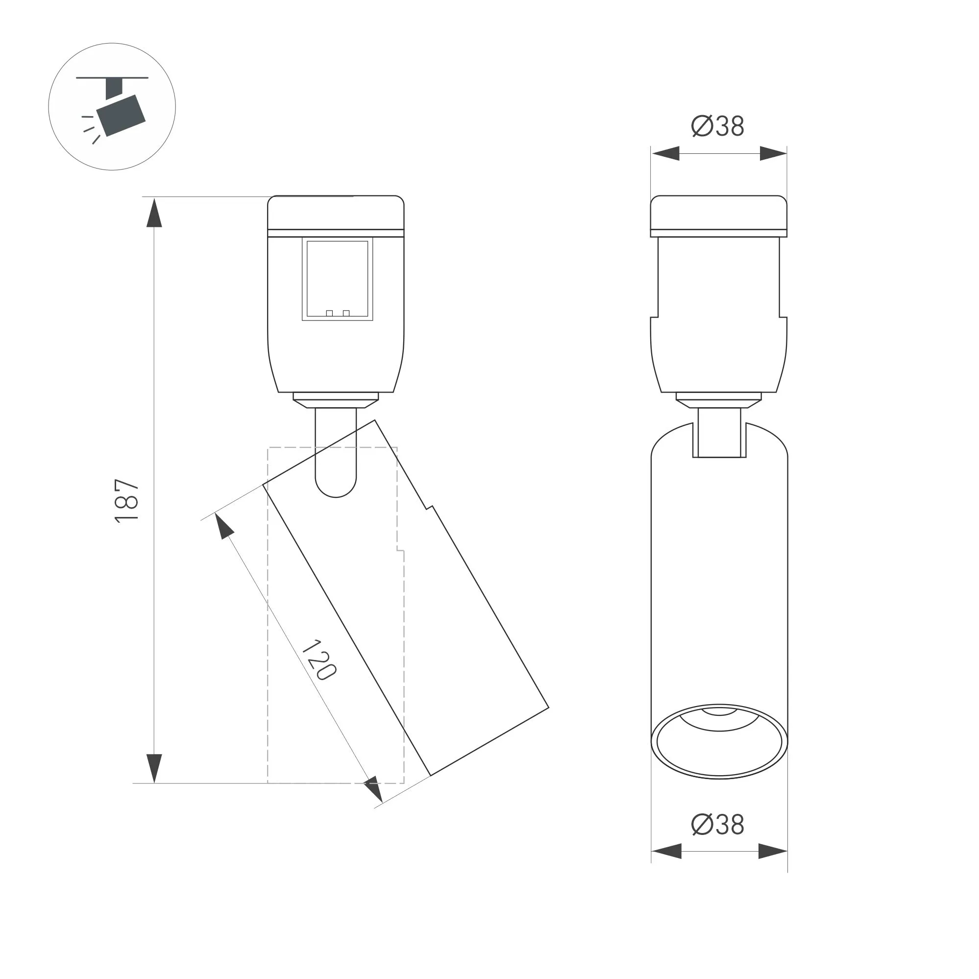 Светильник поворотный для треков APRIORI шириной 17 мм. Мощность 8 Вт, св. поток 580 лм, 73 лм/Вт, дневной 4000 K, CRI>90, угол 36°, напряжение питания 48 В. Чёрный фигурный корпус из алюминия, степень защиты IP20. Размер: Ø38 x 187 мм. Монтаж на трек APRIORI 17 мм. Пульсация <1%. Возможно диммирование по ШИМ (PWM) или не адресное управление при использовании диммируемого драйвера Dali, 0-10V, TRIAC.