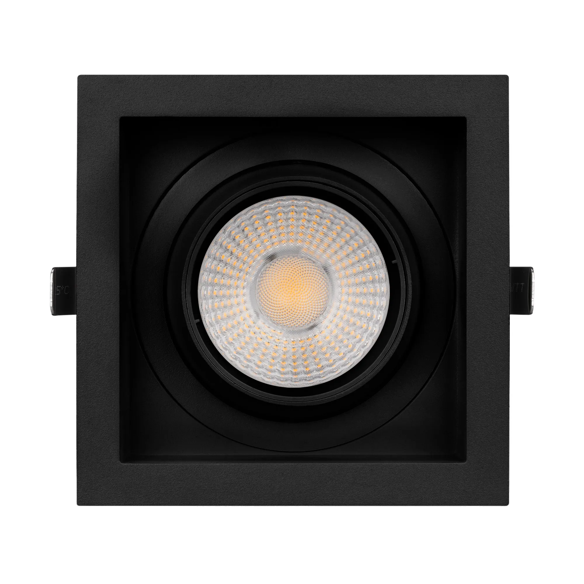 Поставка под заказ от 45 шт. Встраиваемый карданный светильник. Мощность 30 Вт, св. поток 2650 лм, 88 лм/Вт, дневной 4000 K, CRI>92, угол 50°, напряжение питания 230 В. Чёрный корпус из алюминия, чёрная вставка, степень защиты IP20. Размер: длина 140 мм, ширина 140 мм, высота 125 мм. Монтаж встраиваемый, установочное отверстие: длина 120 мм, ширина 120 мм. Драйвер 24-42 В, 750 мА, пульсация <2%.