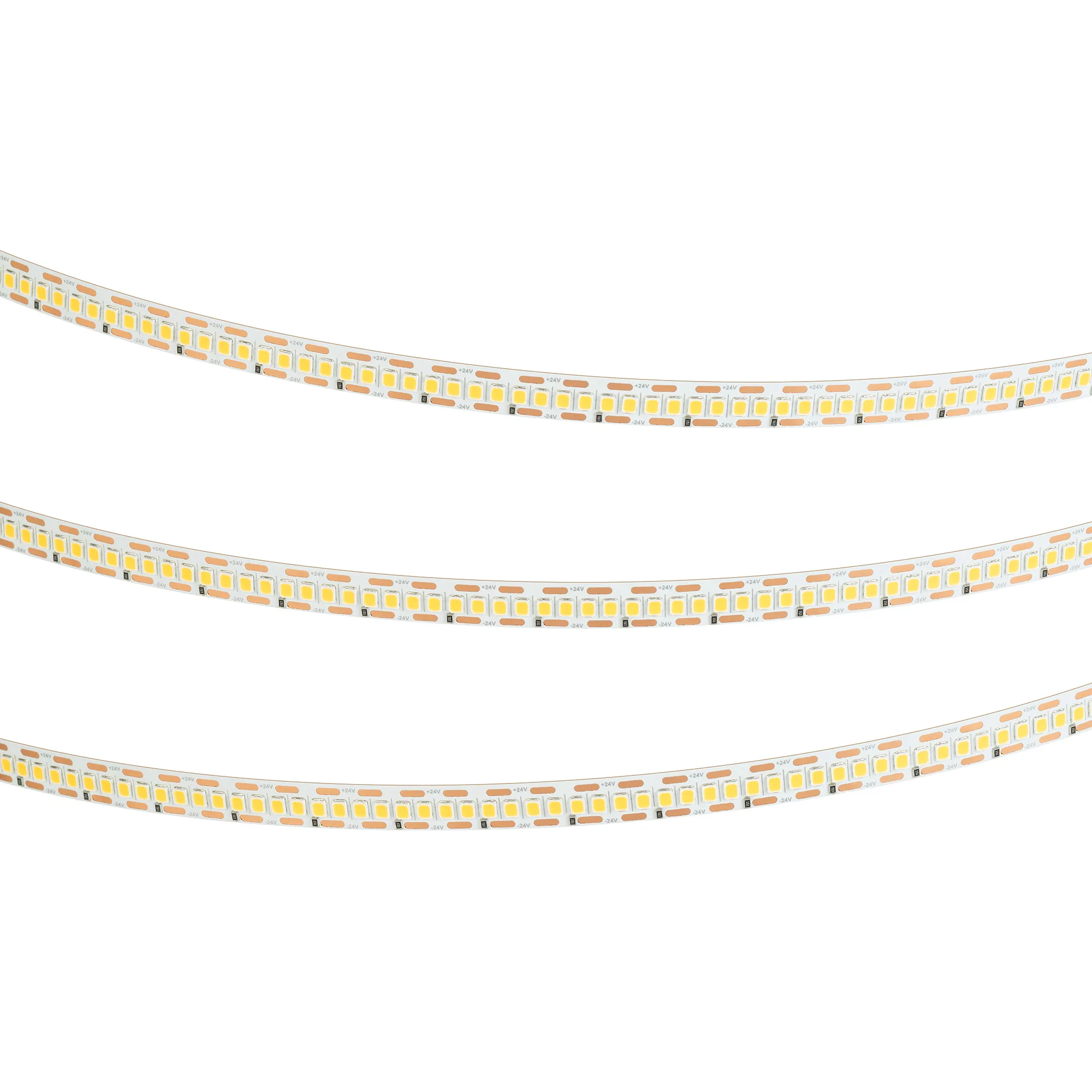 Светодиодная лента FC серии A240 с малым шагом резки. Светодиоды SMD 2835, 240 шт/м, белая плата, ширина 10 мм, скотч 3M. Цвет ТЕПЛЫЙ 2700K, индекс цветопередачи CRI>90, угол 120°. Питание 24 В, мощность 24 Вт/м (120 Вт на 5 м). Размеры 5000x10x1.3 мм. Мин. отрезок 4.16 мм, 1 светодиод. Цена за 1 м. Обязательна установка на профиль.